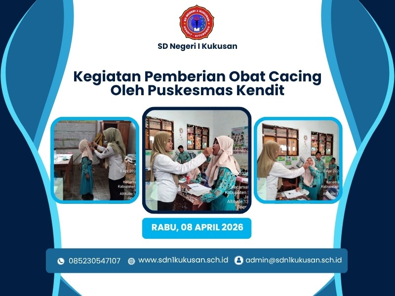 Kegiatan pemberian obat cacing di SD Negeri I Kukusan dilaksanakan pada hari Rabu, 08 April 2026, bekerja sama dengan Puskesmas Kendit sebagai bentuk kepedulian terhadap kesehatan peserta didik. Kegiatan ini merupakan bagian dari program kesehatan sekolah yang bertujuan untuk mencegah serta menanggulangi penyakit kecacingan yang masih berpotensi menyerang anak usia sekolah dasar.
